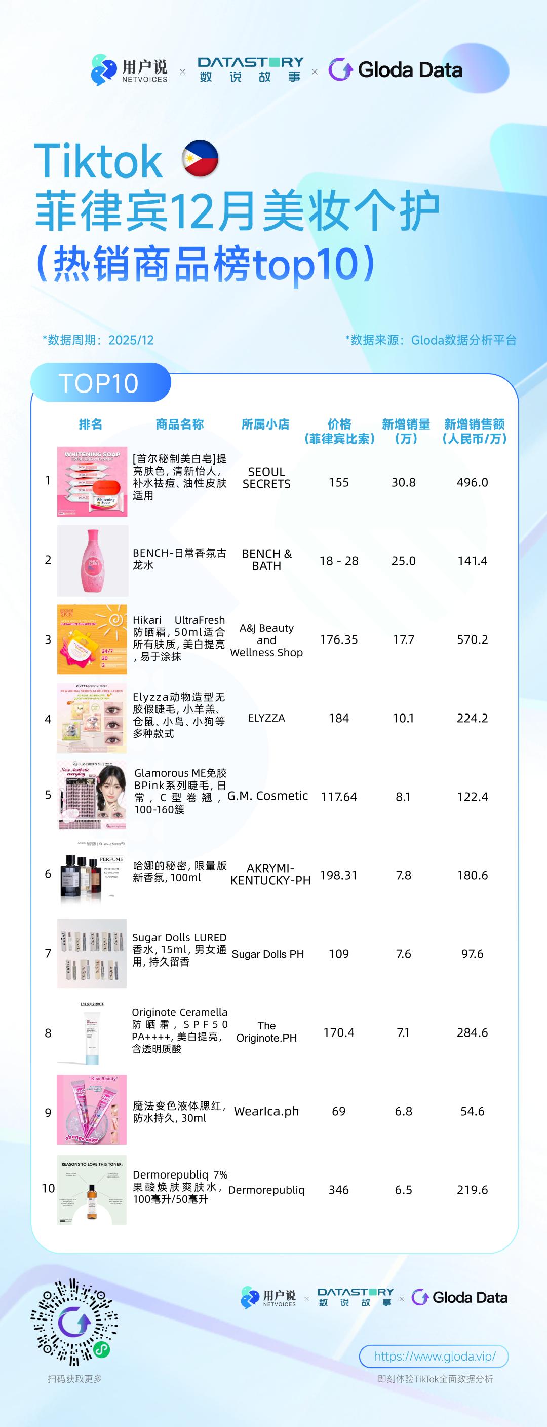聚焦美妆个护品类,12月菲律宾市场销售额达到17.01亿菲律宾比索(约合人民币2.04亿元),环比大幅增长42.83%,成为节庆周期中表现最为突出的核心品类之一。