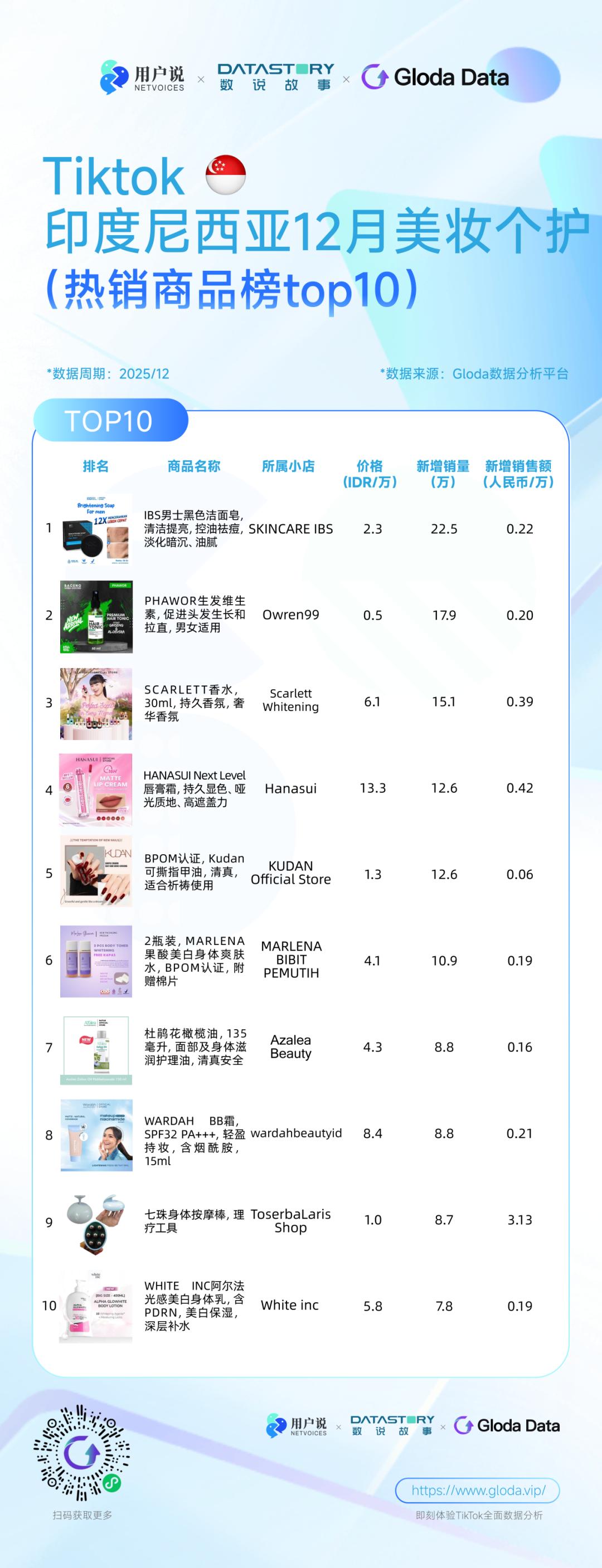 印尼美妆个护12月销售额为2798.26亿印尼卢比(约合人民币1.18亿元),市场受大促后周期性影响,但结构性机会清晰可见。
